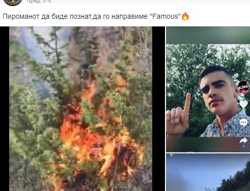 Се појави видео од тинејџер од Скопје кој со запалка потпалува грмушки и го снима пожарот кој го предизвикал. Видеото го објавил и на Тик- Ток.