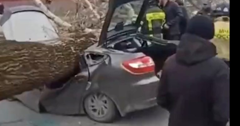 #Russia. Footage of the terrible #hurricane currently devastating #Siberia. In #Novokuznetsk a tree crushed a car: two people died instantly. pic.twitter.com/K3A8jBxrL7