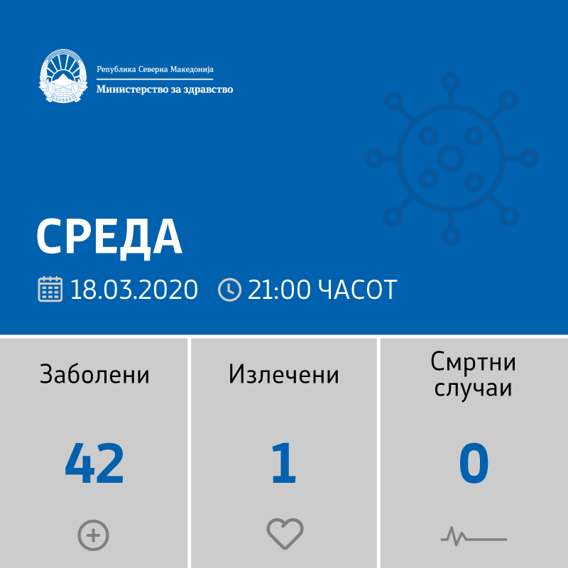 Вкупно 42 заболени, се чекаат резултати од 22 теста