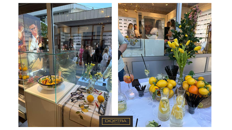 Настанот се одвиваше во автентичен италијански амбиент, збогатен со звуците на италијански канцони, вкусот на лимончело, жолто-сини детали и текстури кои ја пренесоа медитеранската атмосфера. Специјални гости на настанот беа претставници од Италијанската амбасада и директорот на Italian Trade Agency (ITA), чие присуство ја потврди меѓународната вредност и ја изразија својата поддршка за уникатниот концепт и визија на Dioptra Optics.
