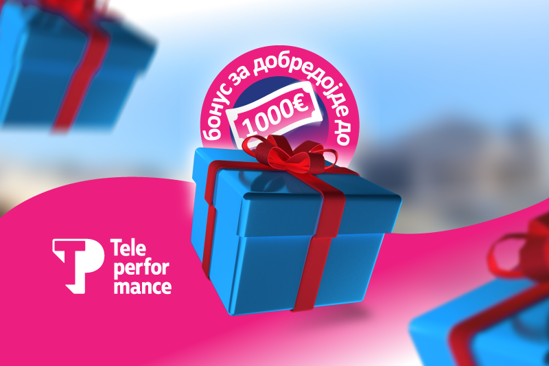 Препознатлив по своите високи стандарди за работа, професионалност и конкурентни плати, Teleperformance оди чекор понапред и на новите вработени кои успешно ќе ја добијат работата, ќе им исплати и неверојатен бонус за добредојде кој достигнува до 1 000 евра.