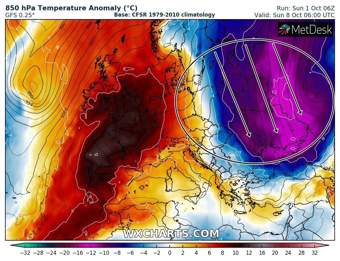 Земјите од североисточна, како и од источна европа на средината од седмицата ќе бидат зафатени од првото влијание на поларниот вртлог кој ќе донесе значително пониски температури на воздухот, но и снег. Температурите ќе бидат значително под просекот за овој период од годината, објави метеорологот Славчо Попоски.
